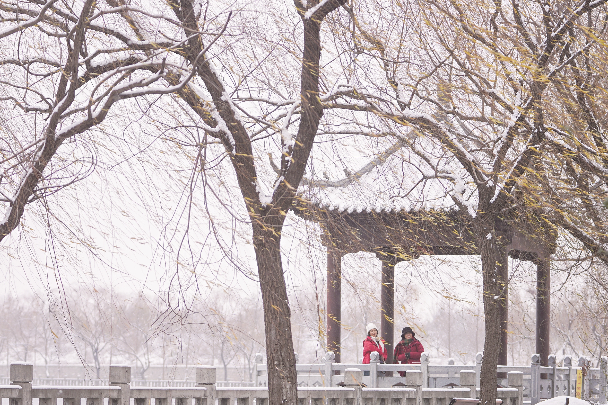 12月13日,市民在山东省邹平市樱花山景区游览赏雪。 新华社发(董乃德摄)