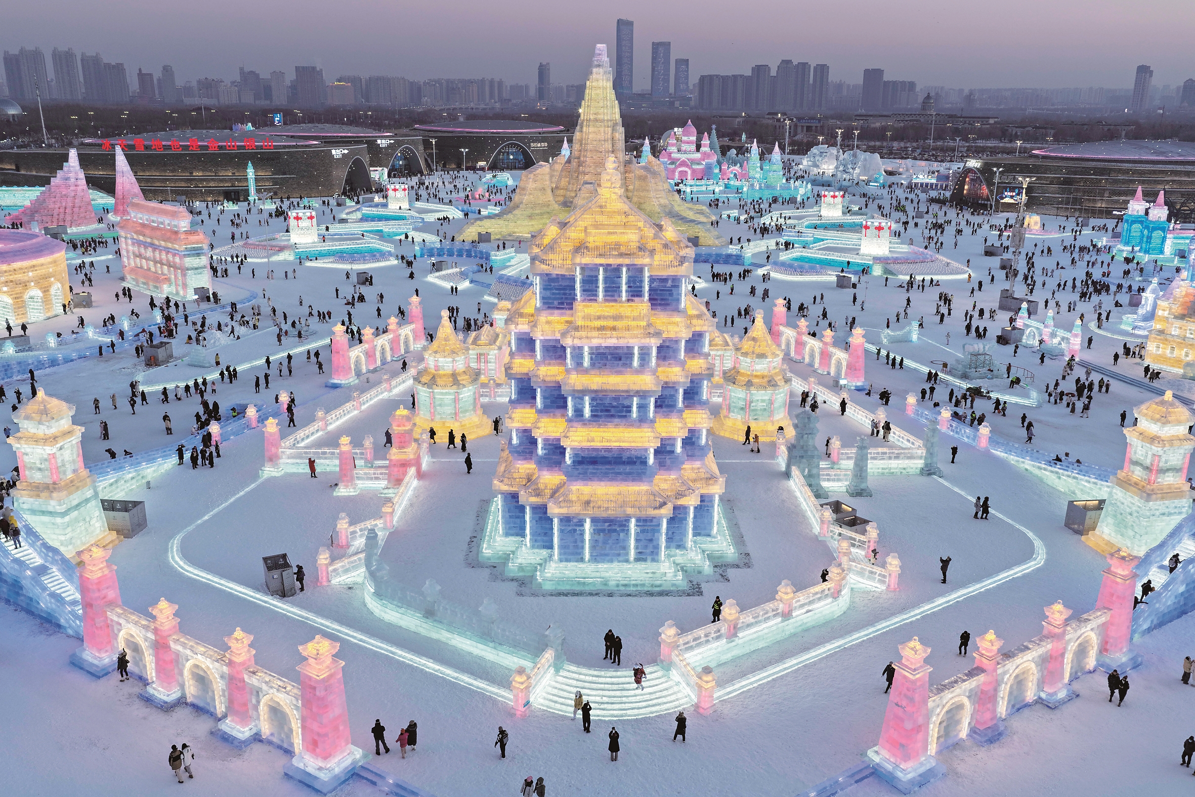 12月17日上午10时,第二十七届哈尔滨冰雪大世界正式开园迎客。园区占地面积达120万平方米,总用冰用雪量突破40万立方米,以历届之最的规模,打造一座冰天雪地的“童话世界”。