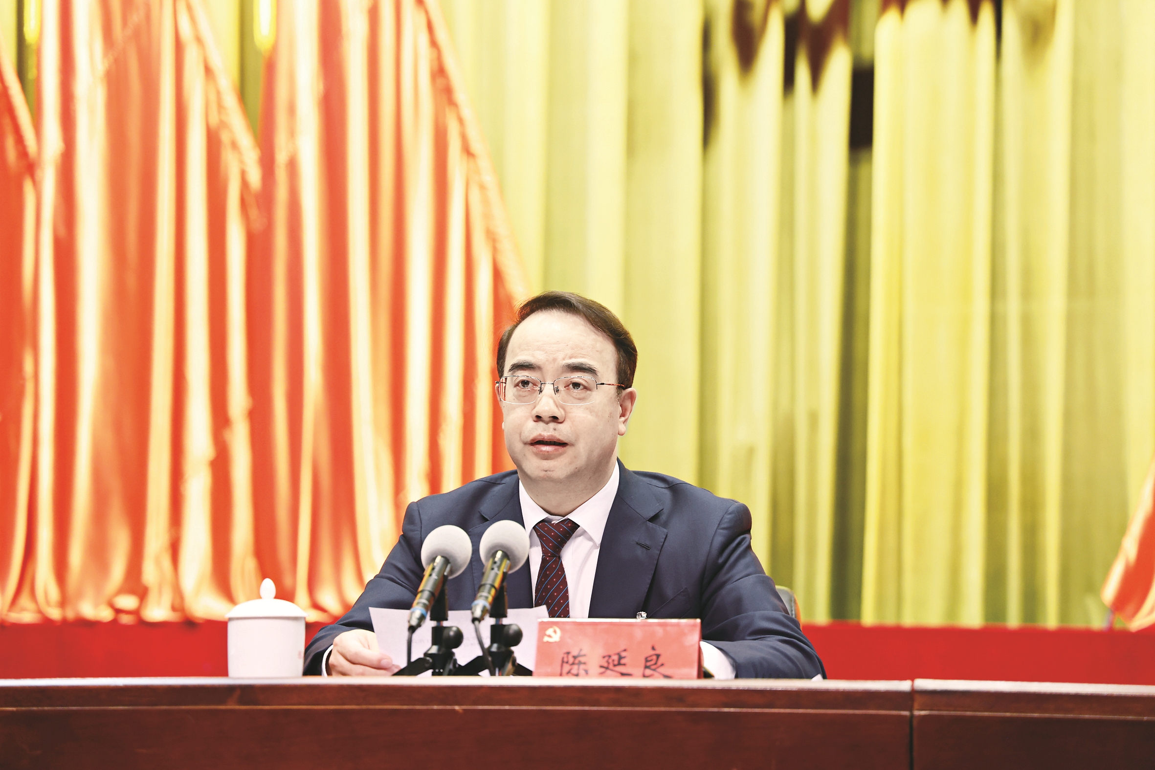 12月30日,市委十届九次全会暨市委经济工作会议在市党政会议中心召开。市委书记陈延良讲话。 本报记者周雪峰 摄