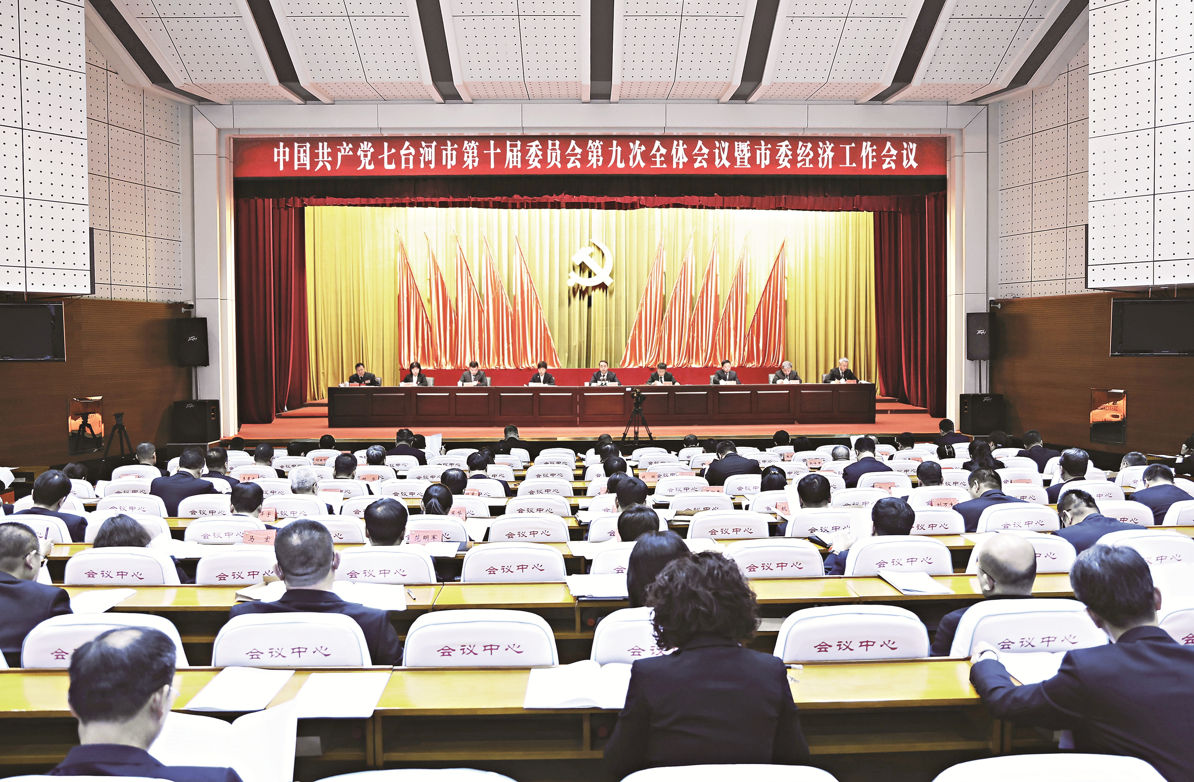 本报12月30日讯 (记者詹俊驰 梅中石)30日,市委十届九次全会暨市委经济工作会议在市党政会议中心召开。全会认真学习贯彻习近平总书记重要讲话重要指示精神,全面落实党的二十大和二十届历次全会、中央经济工作会议决策部署,深入贯彻省第十三次党代会和省委十三届历次全会部署要求,听取和讨论市委十届八次全会以来的工作和2026年全市经济工作安排,审议通过《中国共产党七台河市第十届委员会第九次全体会议决议》和市委常委会抓党的建设工作报告。市委书记陈延良受市委常委会委托向全会报告工作、部署2026年经济工作并讲话。市委副书记、市长张涛对贯彻全会精神、做好2026年经济工作作出安排。