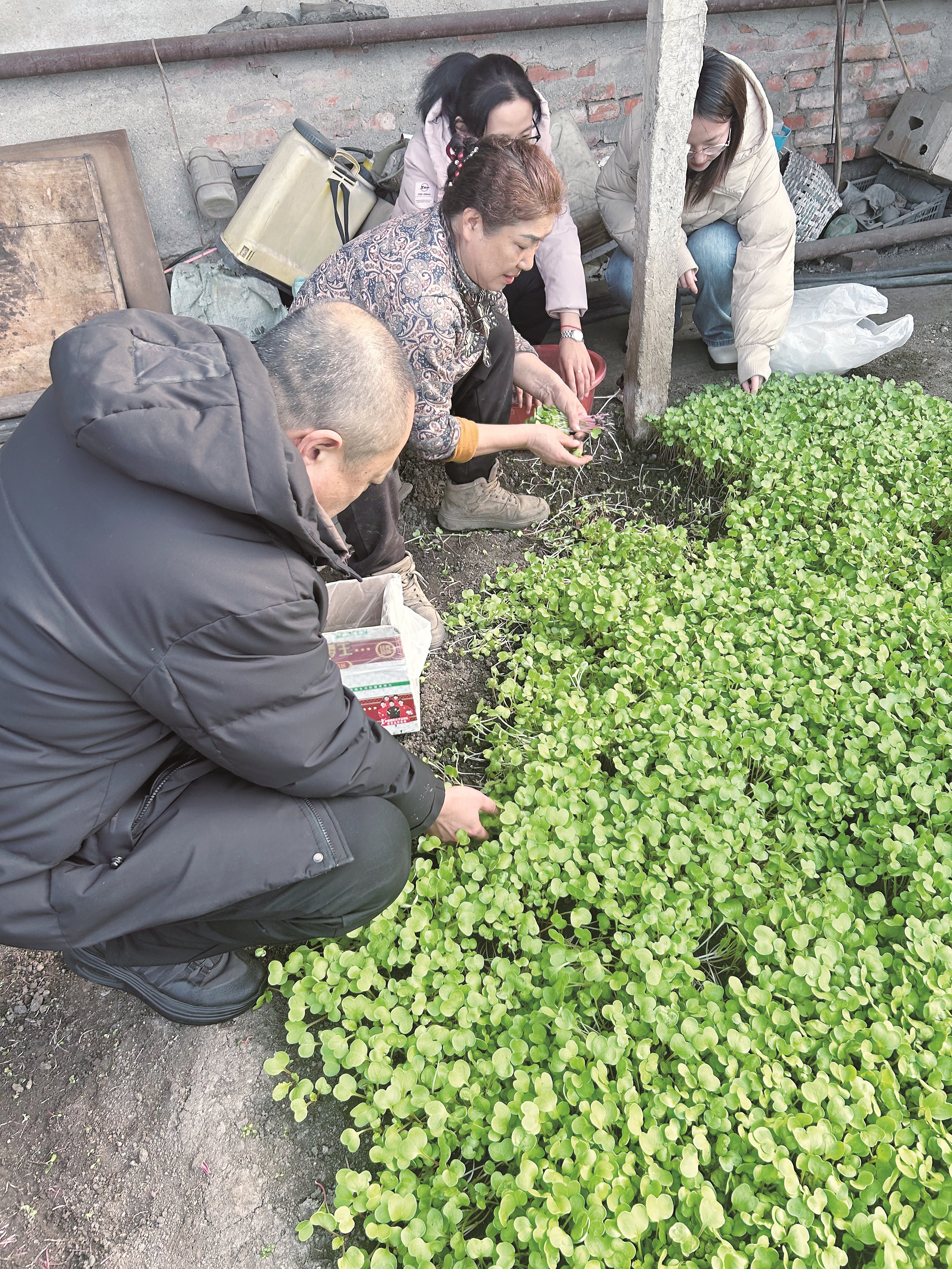 在红胜村村民吕桂霞的温室大棚内,温暖湿润的空气里弥漫着泥土清香。一盘盘嫩绿的大黄柿子菜苗整齐排列、长势喜人,处处透着生机与活力。“我们现在正集中培育本地特色大黄柿子苗,柿子苗长势很好。”吕桂霞介绍,除了育苗,棚内生产的小芽菜也备受市场青睐,每天订单几十袋,日均收入二三百元。