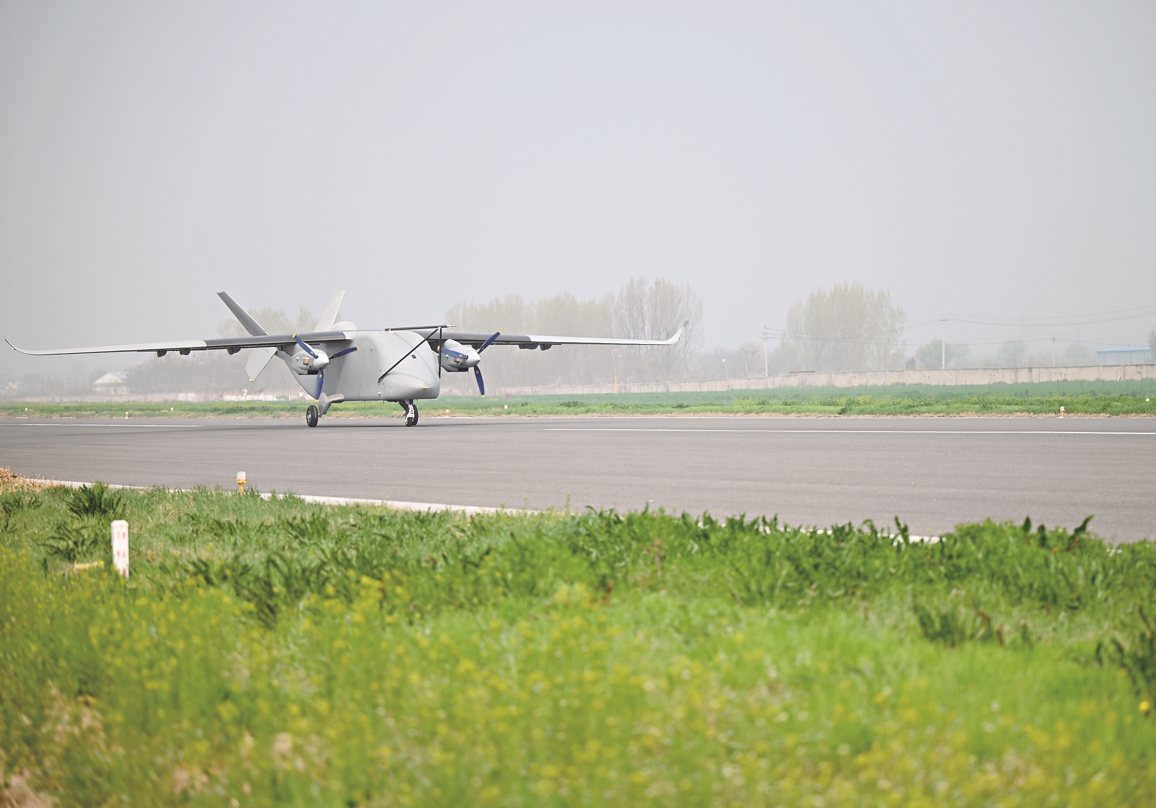 3月31日,运投无人机长鹰-8在河南郑州上街机场试飞后降落。