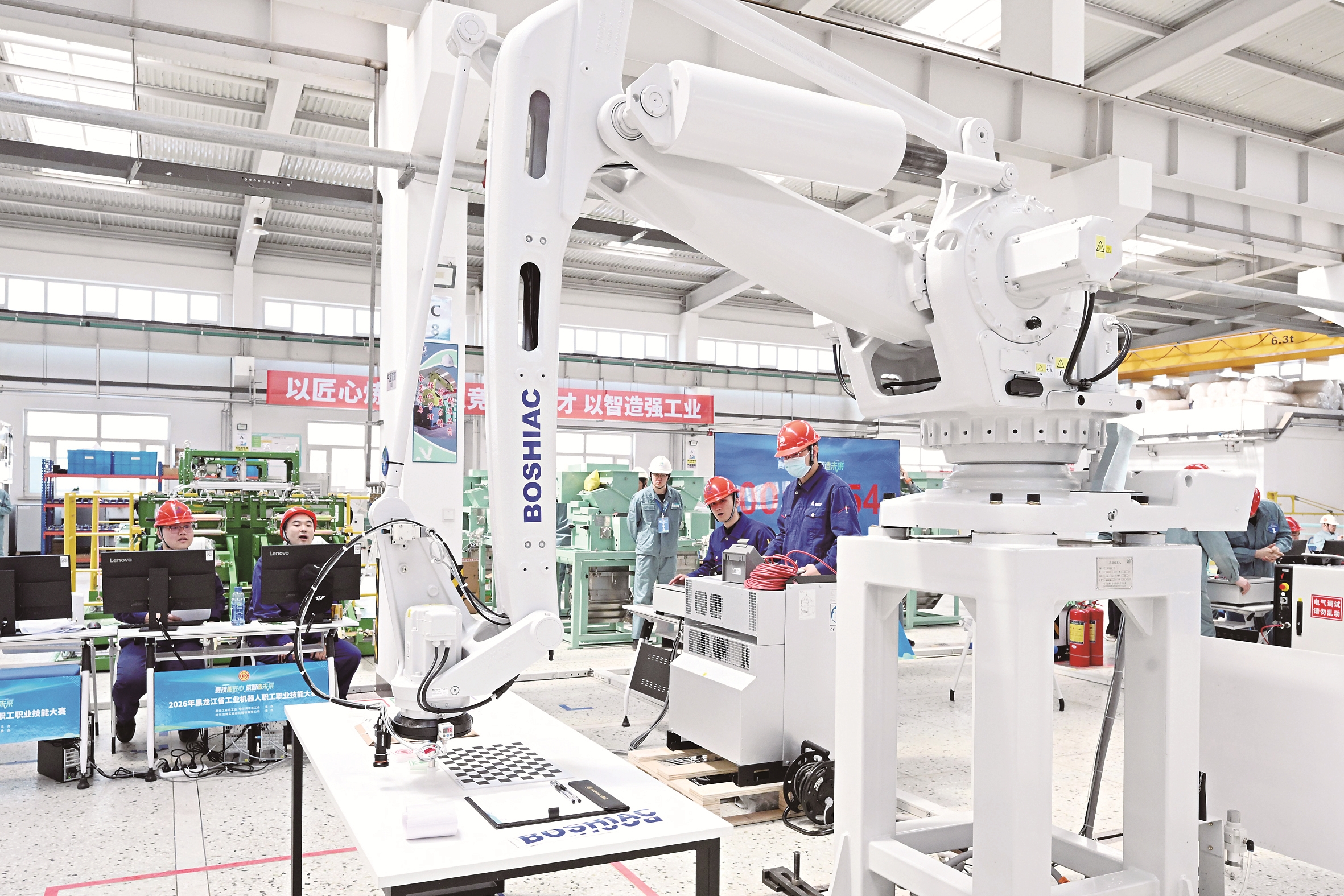 4月1日,2026年黑龙江省工业机器人职工职业技能大赛在哈尔滨举行,比赛设置工业机器人视觉协同编程调试等四个专业赛项,采取理论考试与实操相结合的方式,来自全省各企业一线的技术骨干参加比赛。本次比赛旨在推动全省智能制造领域技能人才队伍建设,助力县域经济和工业高质量发展。