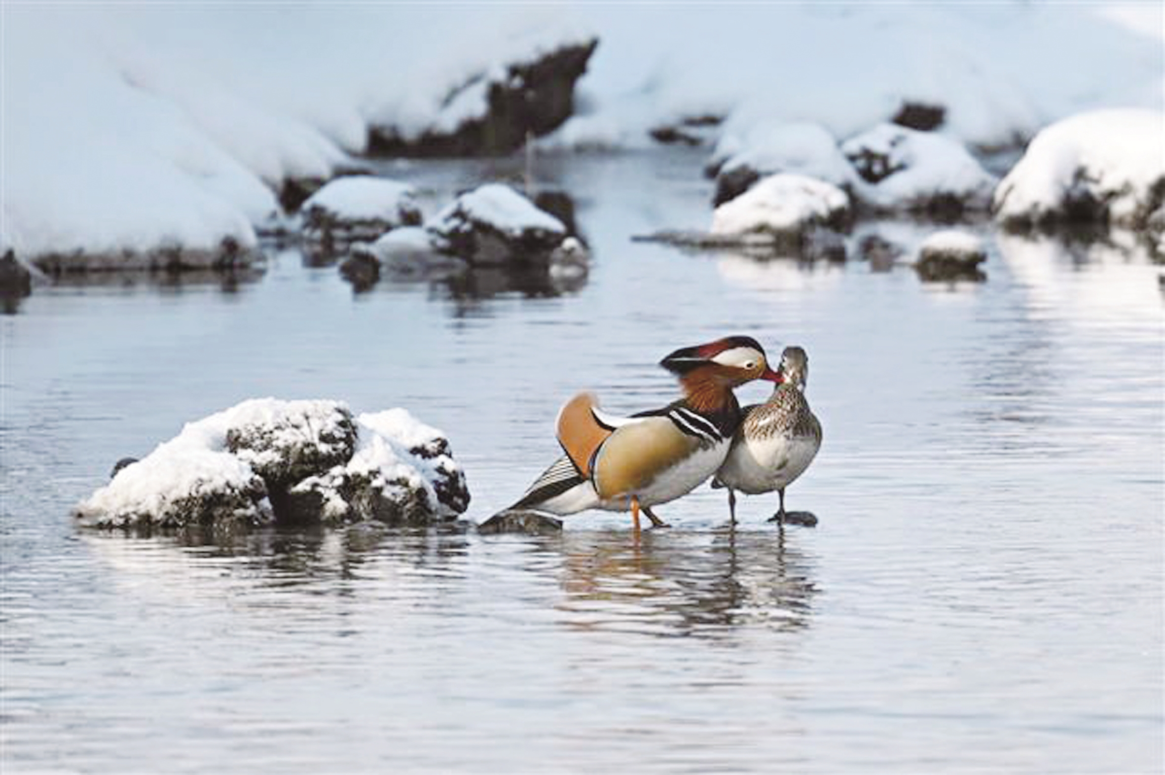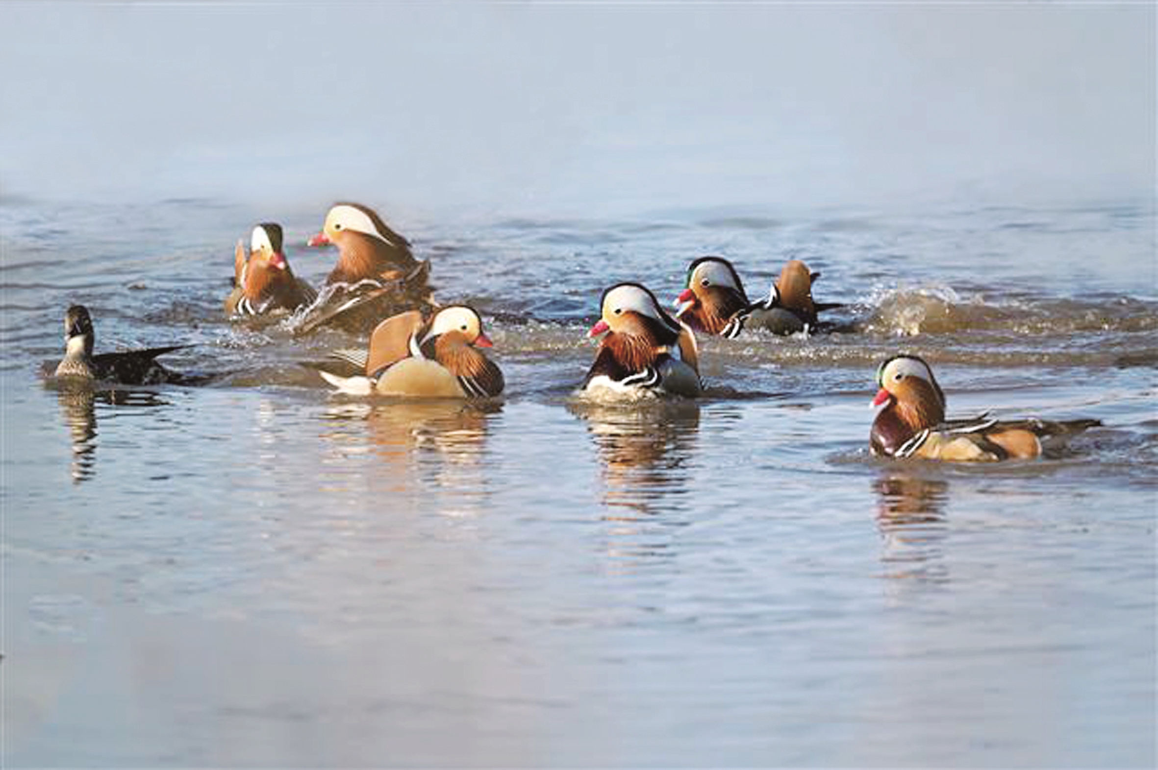 近日,桃山湖国家湿地公园、四新水库迎来了“春日精灵”—成群的鸳鸯嬉戏游弋,在清澈的水面上相互追逐,为初春的七台河勾勒出最灵动的风景线。