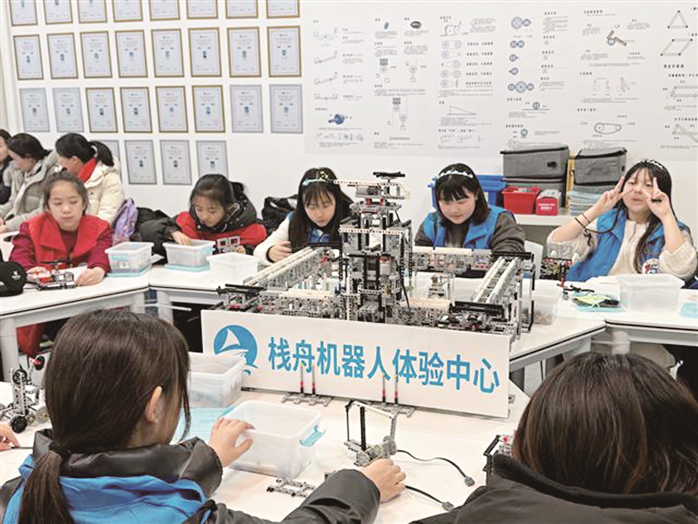 图为学生们在市文化中心体验机器人课。