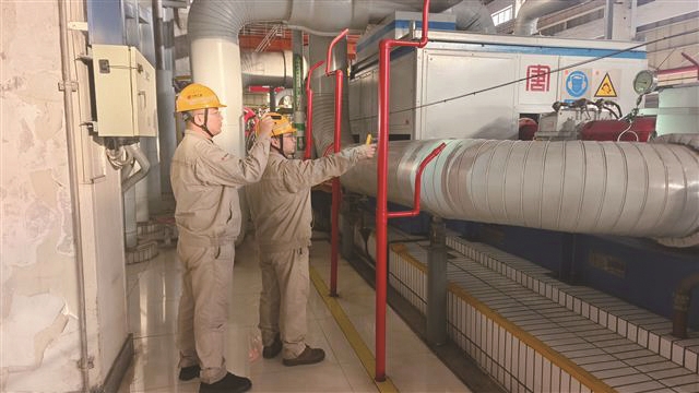 在大唐七台河发电公司现场,工作人员携带检测仪器对供热管道进行巡检。为应对低温挑战,大唐七台河发电公司通过开展全覆盖设备隐患排查,对热网加热器、循环泵等关键设备进行全方位“体检”,完善应急预案,确保设备零缺陷运行。同时,加强与电网调度协同联动,精准匹配供热负荷,优化运行参数,全力提升机组顶峰能力,保障应开尽开、应发尽发。“我们组建了应急保障队伍和供热检修专班,实行24小时值守制度,一旦发现设备异常或接到报修信息,会第一时间赶赴现场处置。从设备巡检到应急抢修,每个环节都压实责任。”大唐七台河发电公司发电部值长王兴向记者说明。