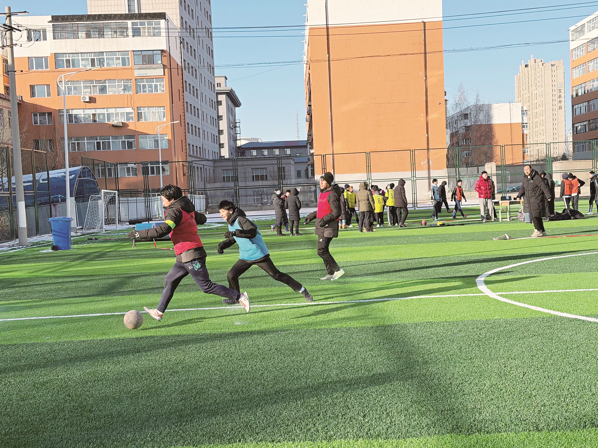 赛场上,运动员不惧严寒,展开激烈角逐,充分展现我市中小学生坚韧不拔、勇往直前的精神风貌。市田家炳高级中学学生杨轩彭说:“能代表学校参加‘雪地杯’足球赛很自豪。我们在冰雪赛场上奋力奔跑,默契配合,不仅磨炼了我们的意志,还让我们懂得了团队合作的重要性。”