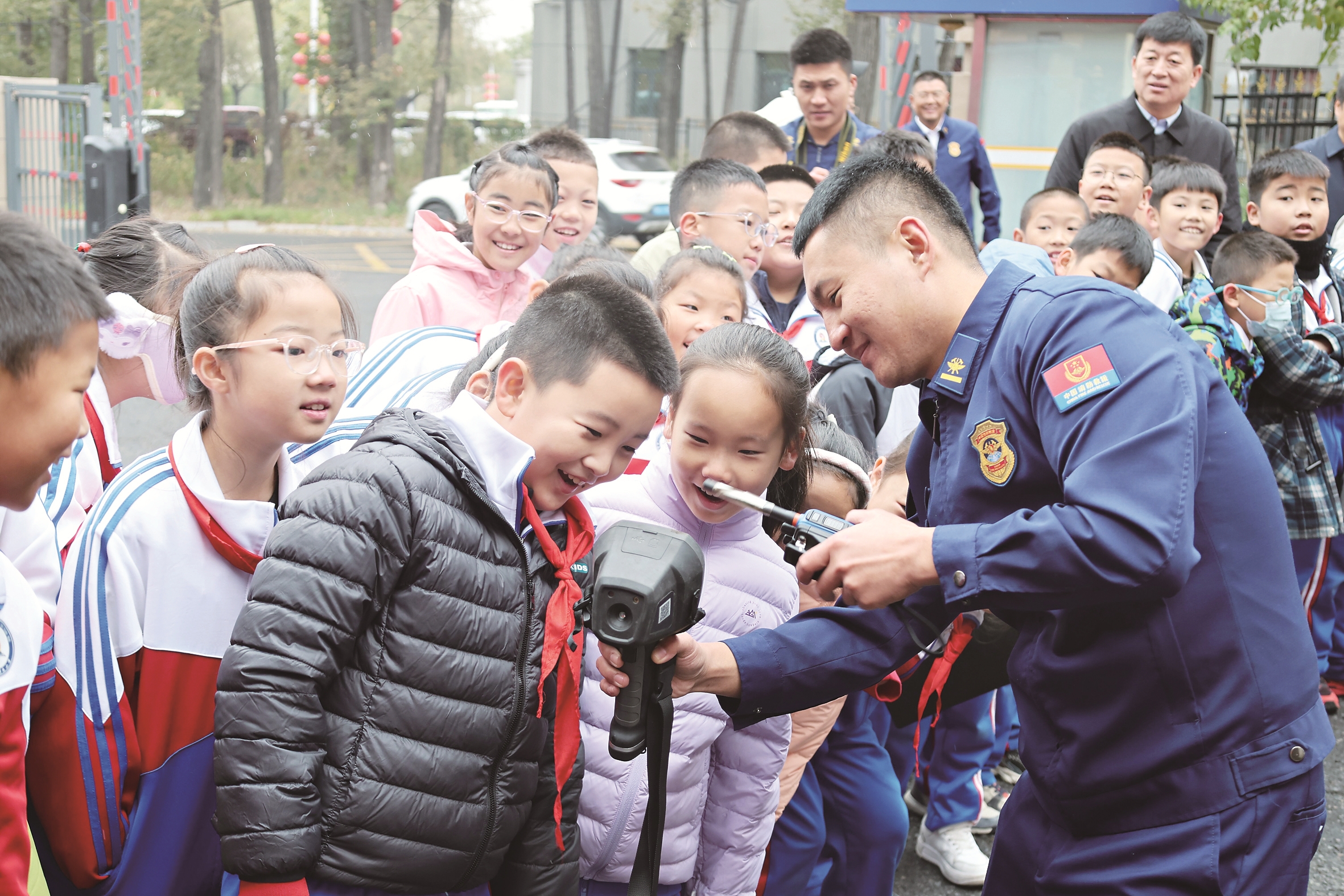 本报讯 (樊珺 记者李佳莹)10月14日,市第九小学师生走进桃山区消防救援大队开展研学活动,探索消防队里的秘密。活动现场,消防员亲切地与学生交流,学生们目不转睛地看着,..