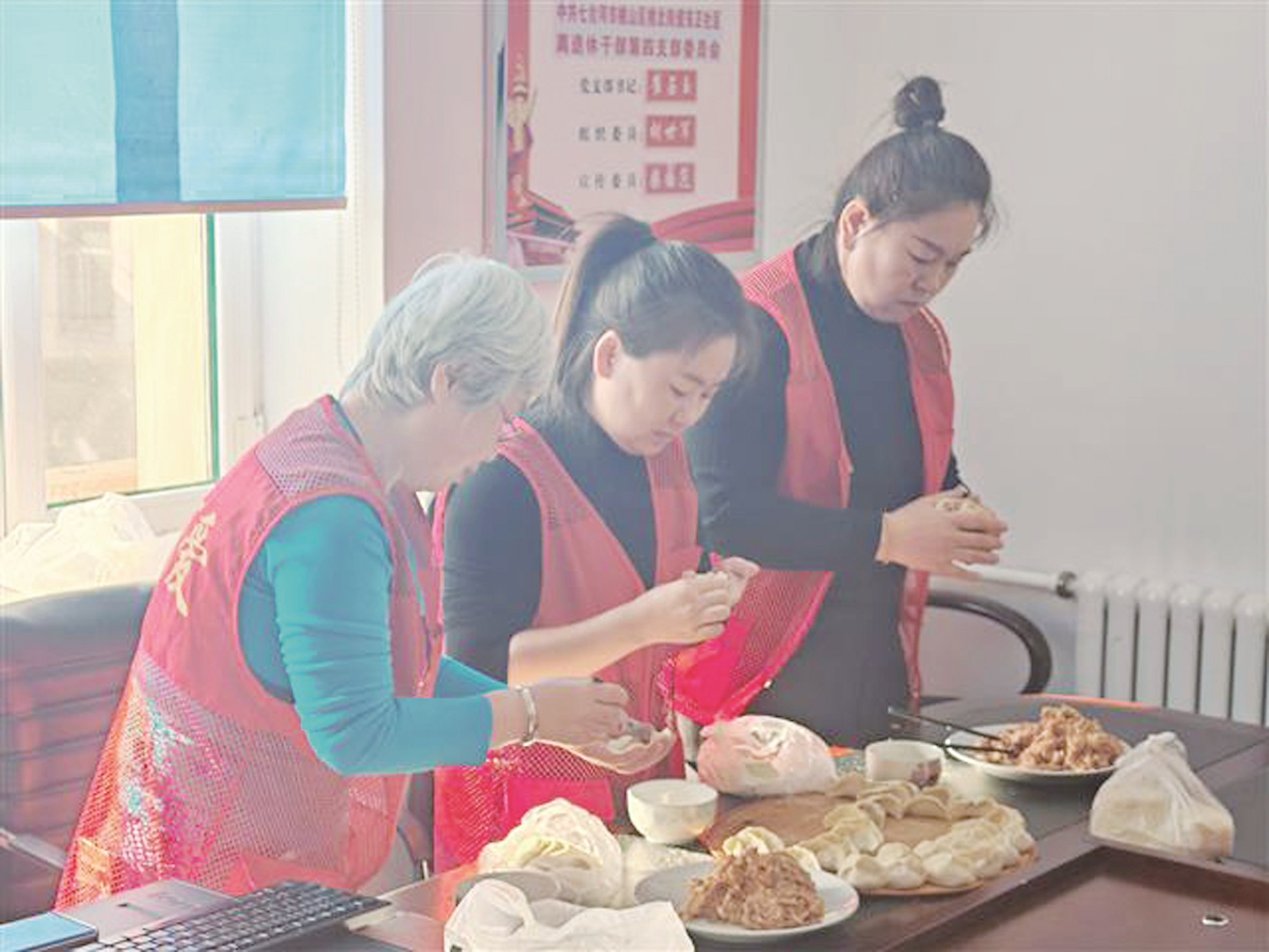 活动当天,社区活动室内暖意融融,志愿者分工协作、配合默契,和面、擀皮、调馅、包捏,不一会儿,一排排形态各异的饺子就摆满了托盘。同时,顺丰速运七台河分公司与社区的工作人员一同将煮好的饺子精心打包,送往顺丰速运光明街店。