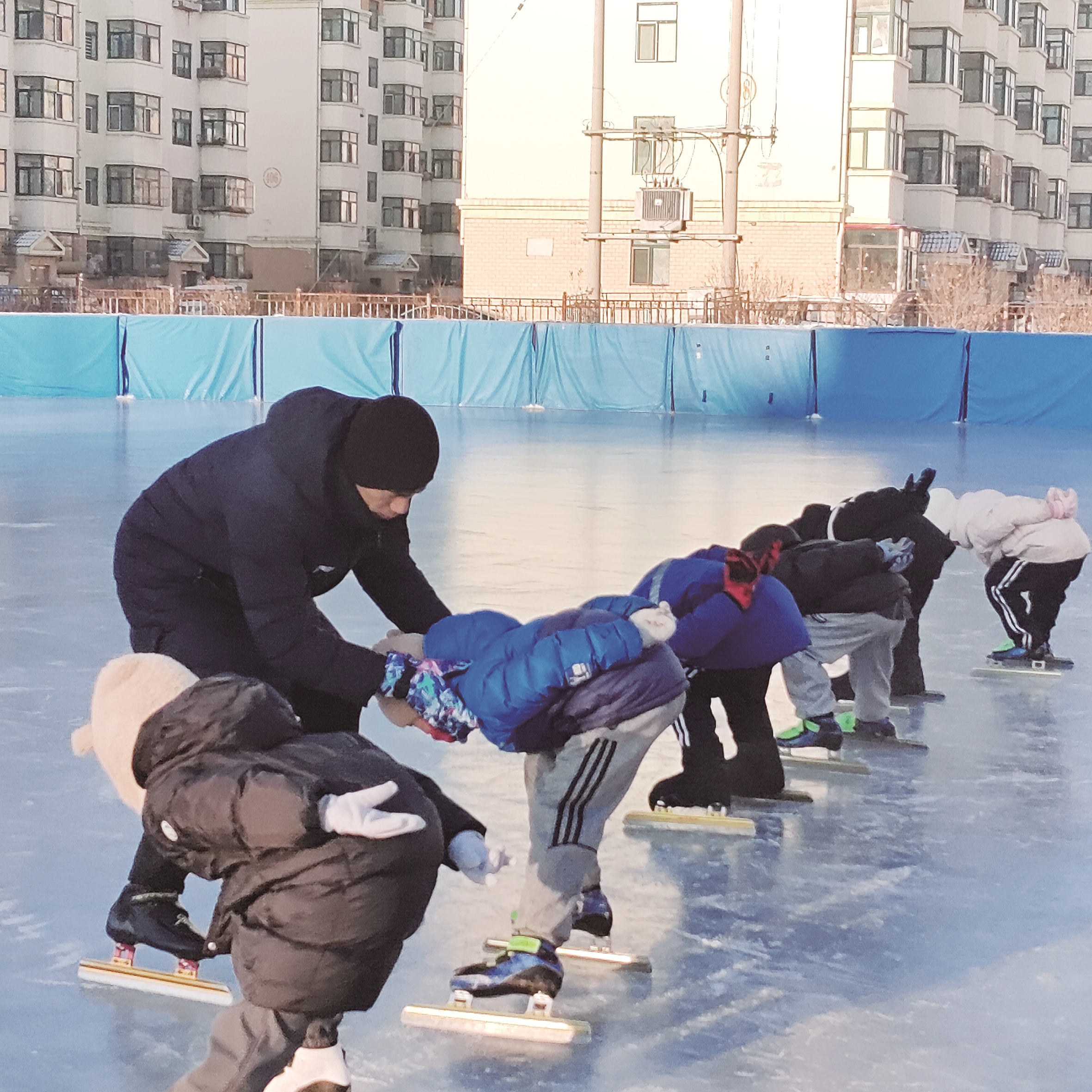 新建小学短道速滑教练员王凤祥带领孩子们进行接力滑行练习,滑行、摆臂、转弯,每一个动作他都亲自示范、逐一纠正。“我们调整了冰上课内容,加入了趣味竞赛和技能强化训练,让孩子们既练就本事,又懂冰雪赛事。”王凤祥看着冰面上你追我赶的孩子们,眼里是藏不住的期许,“希望能为家乡多练出几批好苗子。”