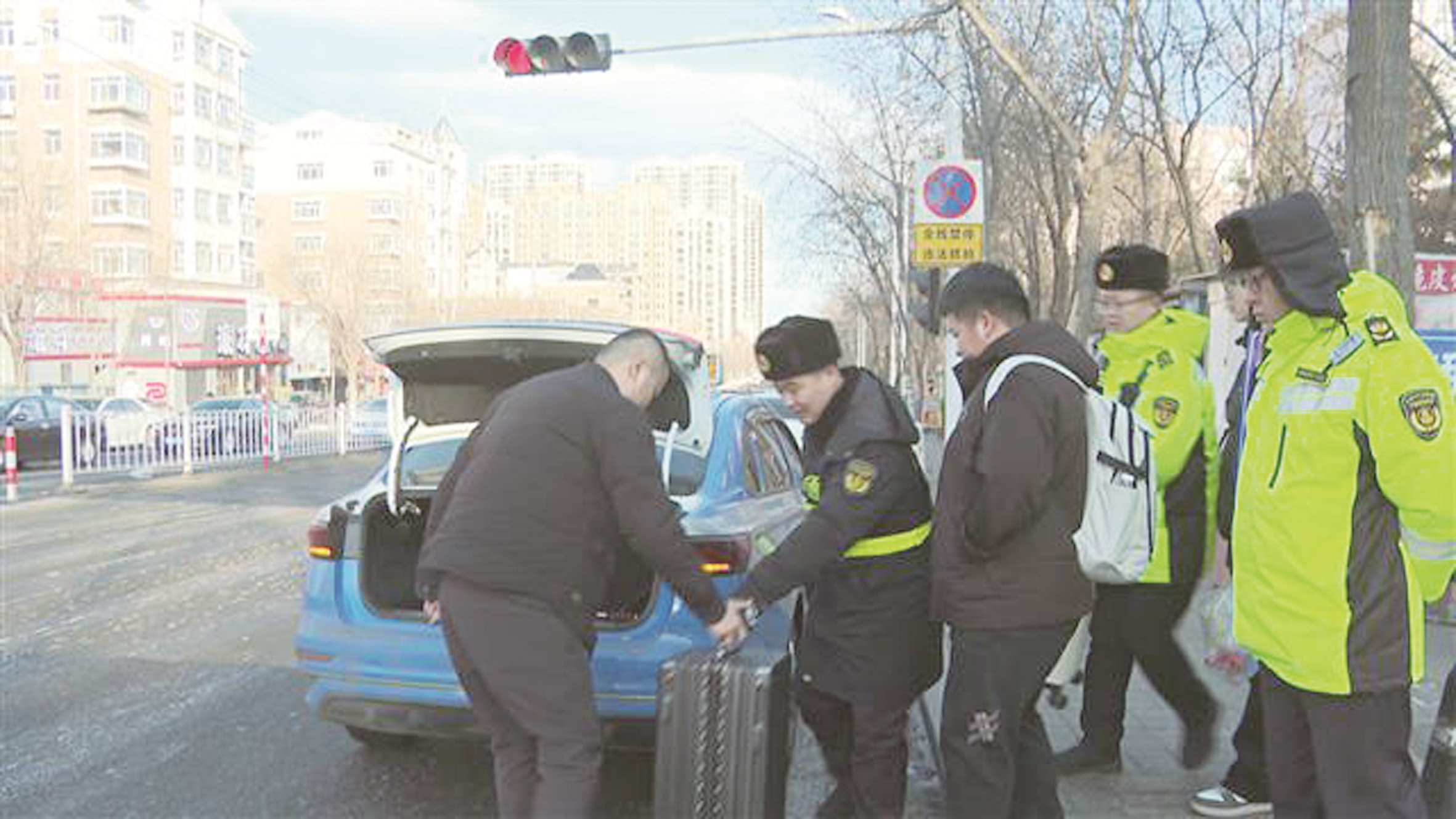 学生离校期间,市交通运输综合行政执法支队积极沟通市云程交通公司合理调配运力,根据高校学生放假时间和客源分布情况,开通校园至高铁站直达专线。同时,执法人员在七台河职业学院周边区域,重点打击从事非法营运车辆及出租车拒载、绕路、议价、不按规定使用计价器等违法违规行为,并在学校门口、各交通枢纽等人流聚集区设置执勤点,维持现场秩序,引导车辆有序通行、规范停靠,帮助学生搬运行李,为学生营造出舒心、放心、安心、暖心的出行环境。市交通运输综合行政执法支队执法一大队大队长张良说:“这次我们提前驻点布控,严打非法营运保障学生出行安全,组织车辆提供‘点对点’直达服务。看到学生们顺利上车、平安返乡,再冷再累也值得。”七台河职业学院日常管理科科长张亮说:“交通执法部门把服务延伸到校门口,不仅打通了从校门到车站的‘最后一公里’,更通过严格执法净化了周边出行环境,直通车让学生们出行更便捷,也让学校和家长对学生的出行安全更放心。”